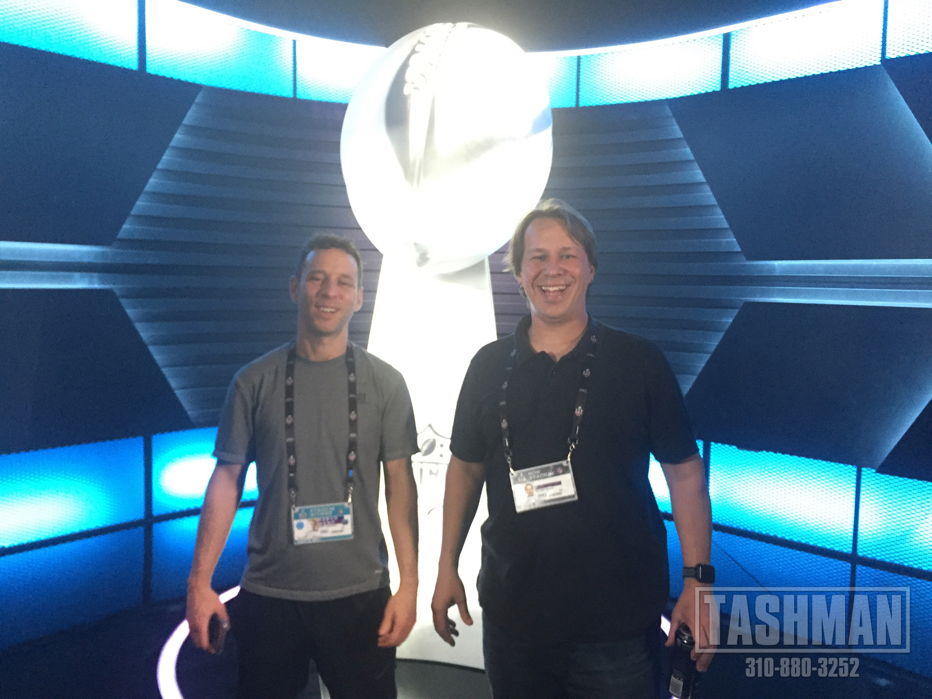Tashman worked with V Squared Labs to provide a video mapping projection back drop for the player profiles for SuperBowl LI.